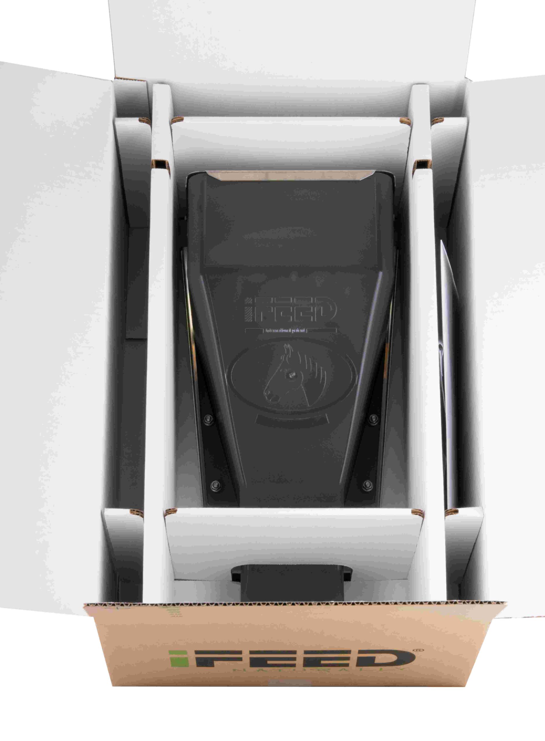 iFEED je inteligentní dávkovač krmiva určený pro instalaci z vnější strany stáje, tedy mimo dosah koní. Tím je zajištěna maximální bezpečnost, snadná údržba a komfortní přístup při doplňování krmiva.